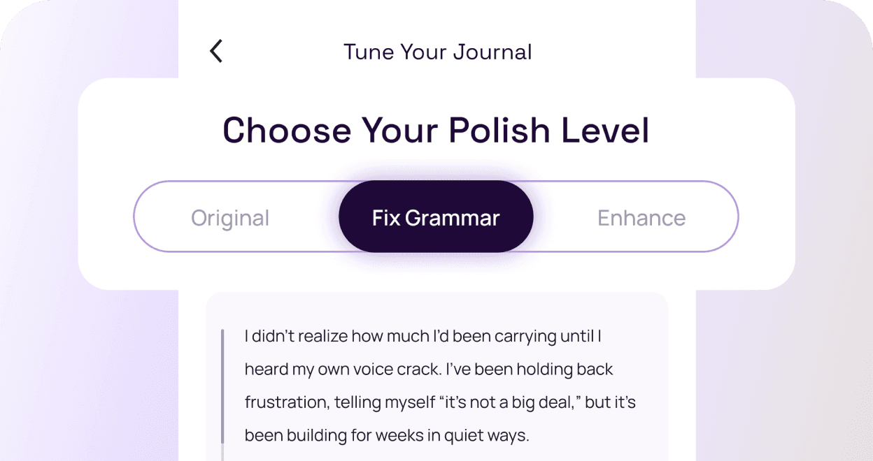 Transform your raw thoughts into refined text. Choose the level of AI assistance, from a simple grammar fix to an 'Enhanced' rewrite for beautiful clarity and flow.